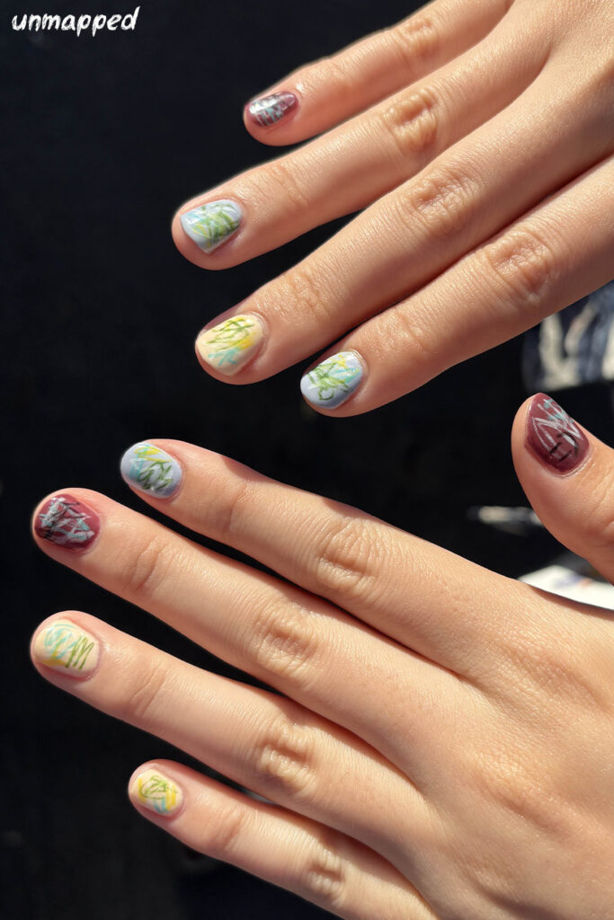 This look is also super easy to recreate at home (disclaimer! I am not a professional). I did my scribble nail design on short nails, but it works for any length. Personally, I think it looks best on shorter nails!